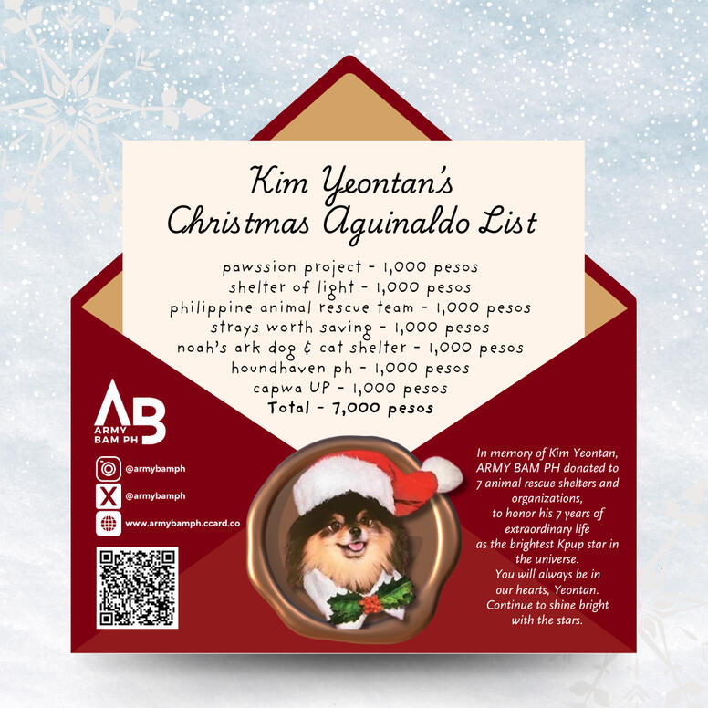 In memory of Kim Yeontan, ARMY BAM PH donated to 7 animal rescue shelters